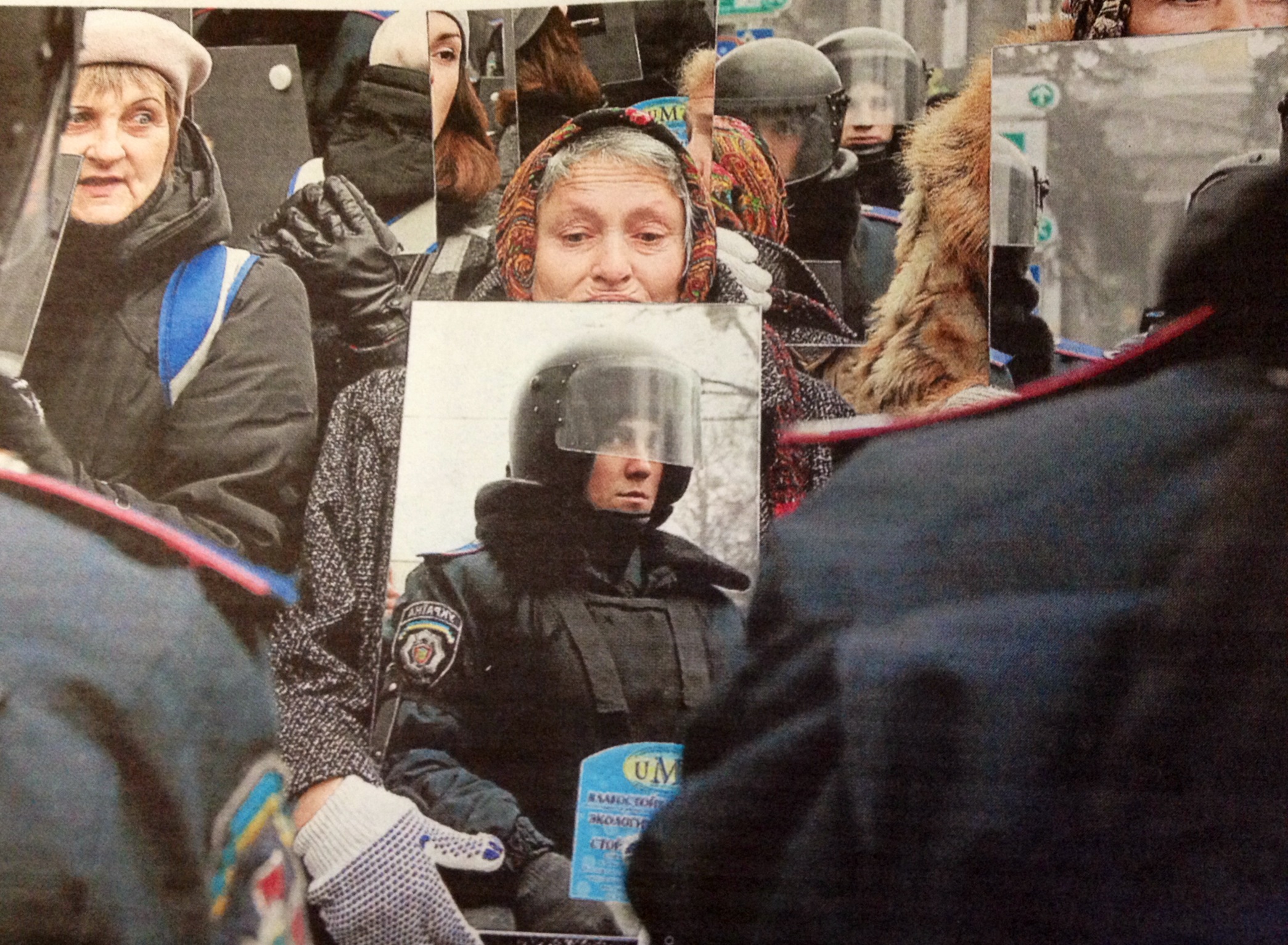 Esta imagen del policía ante mujer ucraniana con espejo refleja muy bien esa condición «inesperada» de la representación, que puede considerarse artística a su pesar o , precisamente, por eso mismo. Esas mujeres tienen la esperanza de que el hombre que tienen delante reflexione sobre su propia condición y creen que cambiará su punto de vista sobre las cosas. Esta radical oposición performativa de género que intenta convertir a un represor uniformado en un ser humano, le añade a la estética un profundo sentido ético. Lograr su duda y conseguir que, aunque sea como representación, se pase al otro lado del espejo sería, de este modo, un arma decisiva para la victoria.