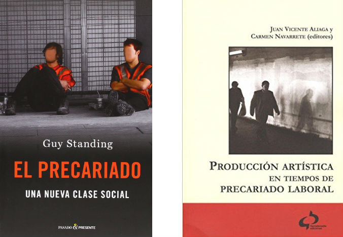 Muchos de estos productores y creadoras –bastante más éstas por el paulatino proceso de feminización de la pobreza- podrían reconocerse en la descripción del precariado laboral que hace Guy Standing en El precariado. Una nueva clase social, cuando se refiere a la gente que tiene trabajos inestables y no llega a fin de mes (desde los becarios que trabajan de camareros hasta las migrantes en situación irregular que cuidan personas mayores o hacen venta ambulante en las calles): carácter discontinuo del trabajo, empleos temporales, amenazas permanentes de despido, inseguridad económica y, en general ingresos bajos, inestabilidad sistémica y flexibilidad extrema en sus condiciones contractuales, por tanto, también ausencia de derechos laborales, protecciones sociales regulares. Es decir, como nos recuerda Maite Aldaz en su texto “Institución arte y precariedad”, editado por Carmen Navarrete y Juan Vicente Aliaga y publicado en Producción artística en tiempos de precariado laboral la desregulación total de la vida. En definitiva una existencia fragilizada, con alta inestabilidad emocional, dando carta de naturaleza a la incertidumbre como modo de existencia.