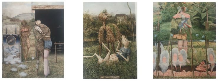 Como alegoría, el cartel podría tener cierta semejanza – me atrevo con la analogía- con la del Ángel de la historia o Angelus Novus el conocido dibujo de Paul Klee que el filósofo Walter Benjamin utilizó en su Tesis sobre la filosofía de la historia para describir su visión pesimista del devenir histórico. Para este filósofo la revolución no sería la locomotora de la historia, sino el freno de emergencia que los pasajeros deberíamos pisar cuanto antes para hacernos con el control del tren y evitar caer en el abismo, frenar la maquinaria arrolladora y detener sus efectos perversos. Sería por tanto – como en los imaginarios mundos de Ameztoy- sobre todo una oportunidad para explorar posibilidades alternativas y abrir caminos de futuro que no conduzcan a nuestra autodestrucción.