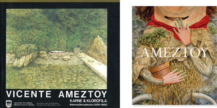 Tras su paso por el Círculo de Bellas Artes de Madrid, el Museo de Bellas Artes de Bilbao inauguró hace unas semanas la exposición retrospectiva de Vicente Ameztoy. Sus comisarios, Miriam Alzuri y Javier Viar, con la imprescindible colaboración de su viuda Virginia Montenegro y, la hija de ambos, Virginia, presentan un exhaustivo recorrido que se inicia en sus pinturas de juventud, de principios de los años sesenta, y termina con las ocho piezas del santoral de la ermita de Remelluri que, a lo largo de sus últimos siete años de vida (falleció el año 2001), realizó por encargo de la familia Rodríguez Hernandorena, propietaria de la bodega del mismo nombre situada en Labastida (Rioja Alavesa). Se exponen también algunas de sus cajas, varios grabados y litografías, dibujos, carteles, portadas de discos, revistas (fundamentales sus colaboraciones a finales de los 70 en la mítica Euskadi Sioux y en la no menos imprescindible Zeruko Argia) y algunos materiales documentales de gran interés para conocer la vida intensa de este artista incomparable.