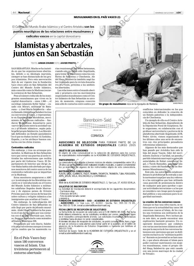 Jamás he estado, ni por asomo, cerca de ETA, ni siquiera de la izquierda abertzale –diría más, ni del nacionalismo moderado- pero en esos años muchos llegamos a pensar que, por cualquier delirio interpretativo de algún fiscal o policía, podríamos haber sido acusados de simpatía o complicidad con ETA por el simple hecho de solidarizarnos con alguna causa humanitaria o apoyar personalmente a alguno de los implicados. Como ilustración de las tensiones padecidas, puedo contar que en el año 2004 el periódico ABC publicó que Arteleku, el centro de arte y cultura contemporánea de Donostia/San Sebastián que dirigí durante dos décadas, era el punto neurálgico de las relaciones entre musulmanes y radicales vascos. La cabecera de la notica decía: islamistas y abertzales juntos en San Sebastián. Semejante desajuste informativo – con las tensiones institucionales y personales añadidas- ocurrió porque cierto periodista se atrevió a señalar que algún participante o conferenciante de los seminarios y talleres que aquellos años estamos organizando sobre migraciones africanas o sobre las representaciones árabes contemporáneas, era dirigente abertzale o islamista radical. Una vez más, aquello quedó en nada, pero la duda y la incertidumbre ya estaban sembradas.