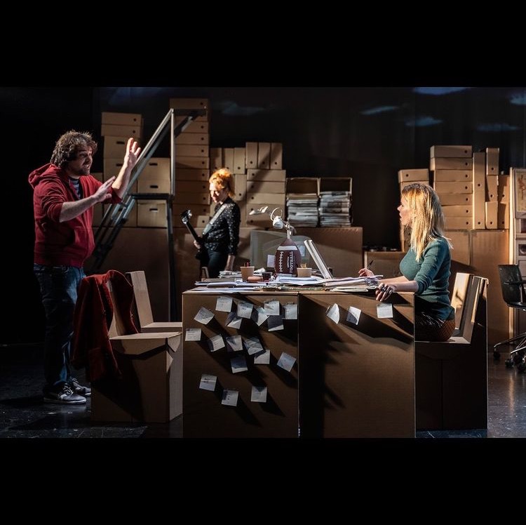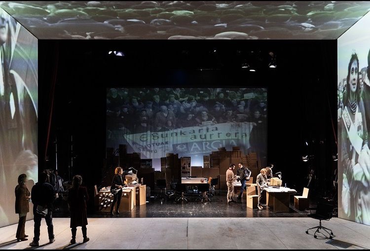 Durante el mes de abril de año 2021 pudimos ver Los papeles de Sísifo en el Teatro María Guerrero de Madrid. Esta obra escrita por Harkaitz Cano y dirigida por Fernando Bernués, está inspirada libremente en la historia del cierre por orden judicial del periódico Egunkaria en el año 2003 y se presenta como un homenaje al periodismo independiente y a los medios de comunicación clausurados injustamente. Es un gesto artístico más en favor de la libertad de expresión, el derecho a la verdad y a la responsabilidad de cualquier estado democrático en esclarecerlas siempre. Como dice el autor de la obra, en boca de unos de los personajes: «un periódico es como un Guerra y paz en pequeñito”. Una novela interminable que caduca cada día. Mientras en la redacción del diario combaten la precariedad y el desengaño y luchan contra el reloj por la precisión y la veracidad, el poder mueve los hilos para intentar controlar la información. Es labor del periodista indagar y preguntar, pero ¿qué sucedería si cambiasen las tornas y el interrogado fuese el periodista?. Sobre el mismo caso, hace unas semanas, también se pudo ver en ETB, la televisión autonómica vasca, el documental Paperezko Hegoak (Alas de papel), realizado a partir de testimonios de algunas personas implicadas que vivieron y sufrieron el cierre de ese diario y sus lamentables consecuencias.