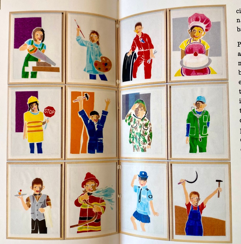 En lugar de pensar la cultura del trabajo, tanto en la fábrica como en los hogares, como una responsabilidad colectiva, una forma de redistribución justa de los beneficios de las rentas o como una posibilidad para pensar el mundo con otras perspectivas más igualitarias y solidarias, la actual ética del trabajo, como discurso individualizador, continúa cumpliendo la función ideológica, consagrada en el tiempo, de racionalizar y naturalizar la explotación y legitimar la desigualdad. El trabajo es la pieza clave de los sistemas económicos capitalistas. Para la mayoría de las personas el trabajo es la vía de acceso a la alimentación, vestido, vivienda y otras necesidades primordiales, pero no podemos olvidar que además es el medio básico a través del cual se nos asigna un estatus y un papel en la jerarquía social. Después de la familia –dice Weeks─ el trabajo asalariado a menudo es la fuente de sociabilidad más importante. La regla de oro de la crianza es educar a las criaturas con las competencias que aseguren tipos de empleos que puedan igualar o mejorar la posición de clase de sus padres. En este sentido, las figuras infantiles que en su serie de dibujos Working Class Heroes (2023)Alonso Gil viste de carpintera, enfermero, soldado, mecánica, repartidor de butano, guardia, médico, pastelera, etc., proyectan el deseo subconsciente de una condición trabajadora que espera del futuro cierta promesa de felicidad. A ninguna niña o niño se le escucha decir que no quiere trabajar o no quiere un mundo donde el trabajo sea una obligación. Muchos, incluso, perpetúan los roles de sus madres y padres. Además, parafraseando a Silvia Federici ─que cita a su vez a Nona Glazer─ en Revolución en punto cero. Trabajo doméstico, reproducción y luchas feministas[5], hacer que la gente sea capaz de trabajar es el objetivo central de la escolarización, un criterio de salud en el tratamiento médico y psiquiátrico, y un ostensible objetivo de la mayoría de las políticas sociales y de los programas de compensación de desempleo. Ayudar a que la gente esté “lista para trabajar” y que consiga empleo son los objetivos centrales del trabajo social. En efecto, dice Michael Seidman en Los obreros contra el trabajo. Barcelona y París bajo el Frente Popular, “[…] en la otra cara de la defensa de los derechos de propiedad, reforzar el trabajo es una función clave del Estado y una preocupación particular en el estado neoliberal posterior al estado del bienestar”[6].
